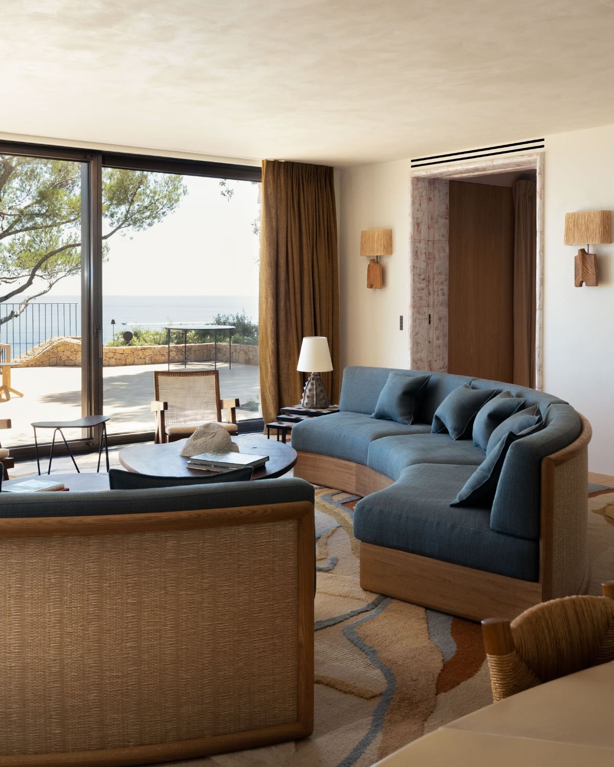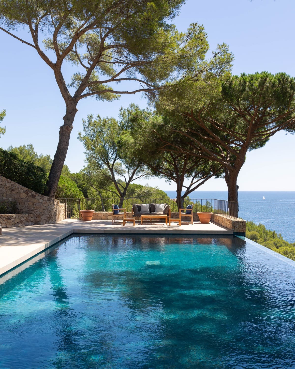 Facing the sea, with exceptional panoramic views over Cap Camarat and the tip of Cap Taillat, the stone residence stands noble and authentic, perfectly integrated into its Mediterranean surroundings. The setting is sumptuous, both outdoors and inside, the house having been entirely redesigned by a renowned architect in deep respect of the place and its spirit.