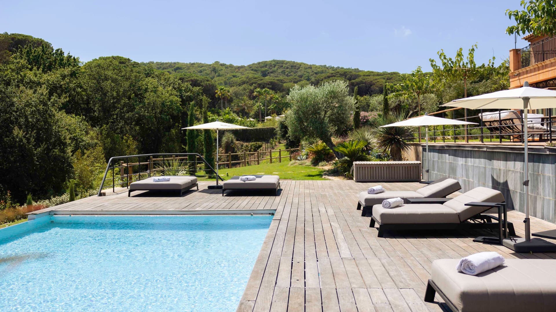 Outdoors, the heated swimming pool blends harmoniously into the landscape, surrounded by wooden terraces, sun loungers and lounge areas. Protected by a true green cocoon, the property invites relaxation in the shade of the pines, between swims, al fresco lunches and long summer evenings.